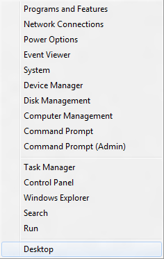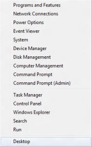 Para aceder ao mesmo, deverá clicar com o botão direito do rato sobre o canto inferior esquerdo do desktop (onde se abre o start screen).
