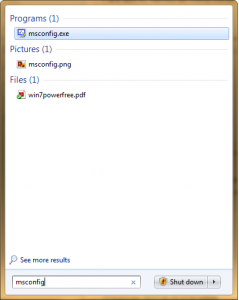 Para abri-lo, vamos ao menu iniciar, escrevemos “msconfig” e damos um clique em “msconfig.exe”: