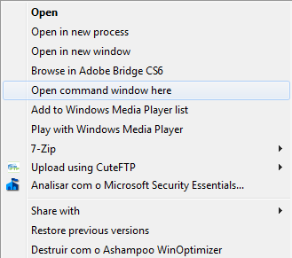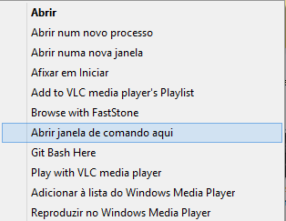 “Abrir janela de comando aqui”