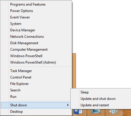 No Windows 8, este era o aspeto do Power User Menu: