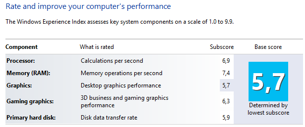 1. Windows Experience Index Esta ferramenta que estava disponível na área “System” do painel de controlo do Windows permitia classificar a performance do computador.